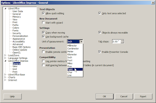 - Modify the size standard by going to the menu and selecting Tools - Options and then LibreOffice Impress - General